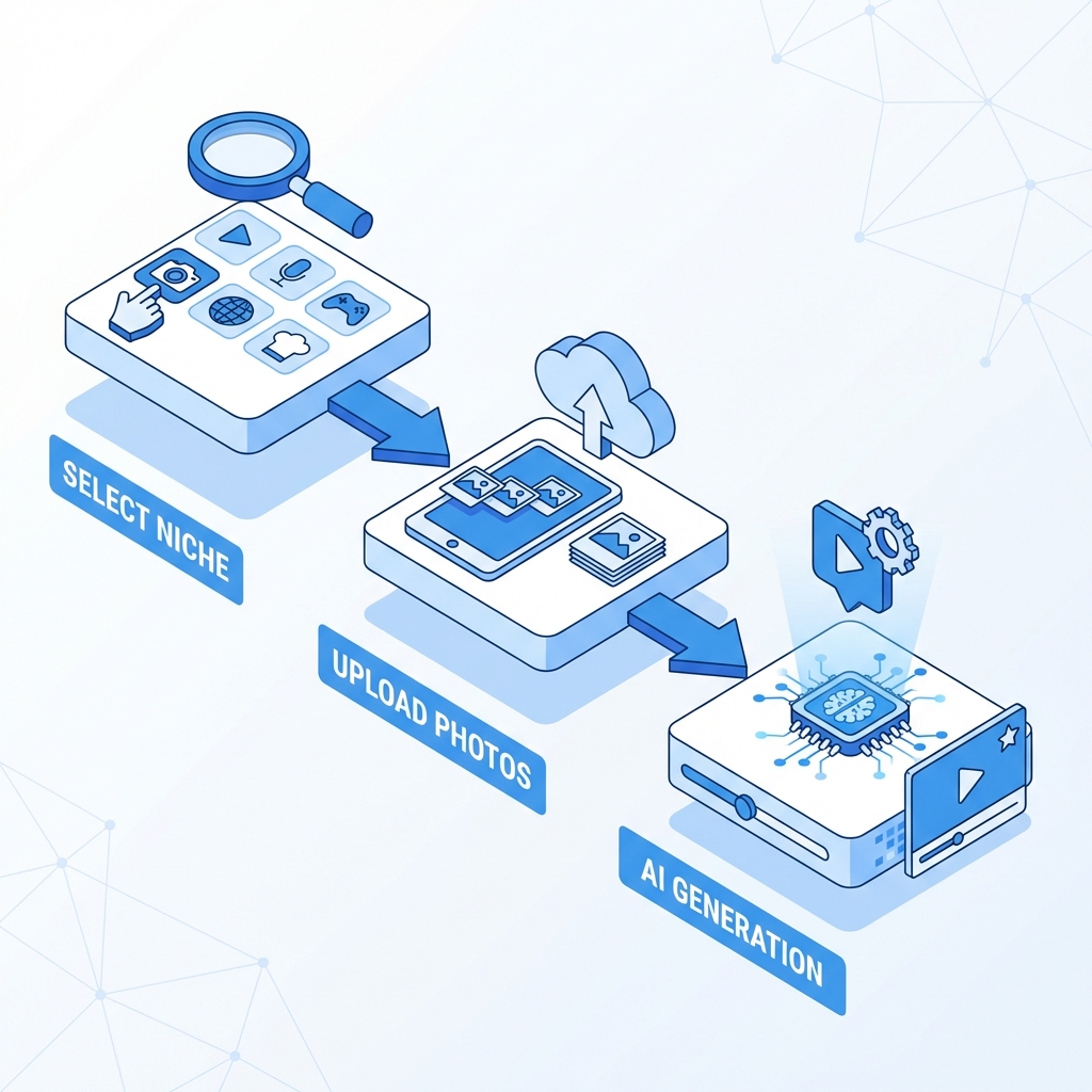 !Isometric illustration of the 3-step video creation process